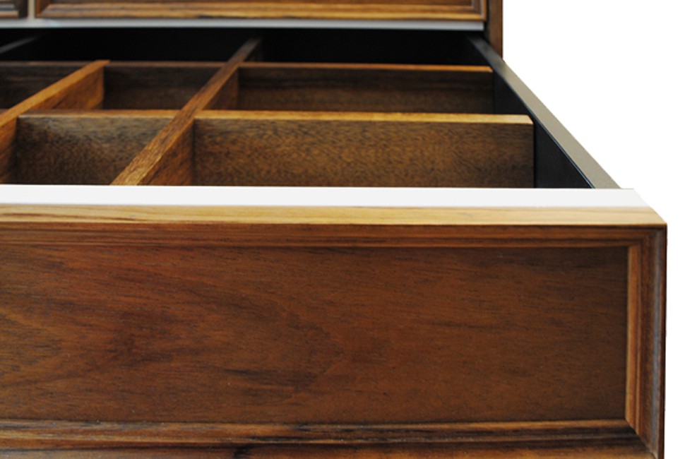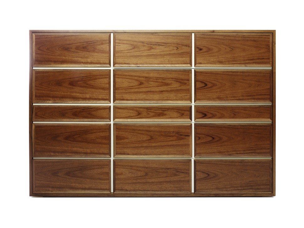Double drawer and profile: Ovangkol veneer, interior: white coated