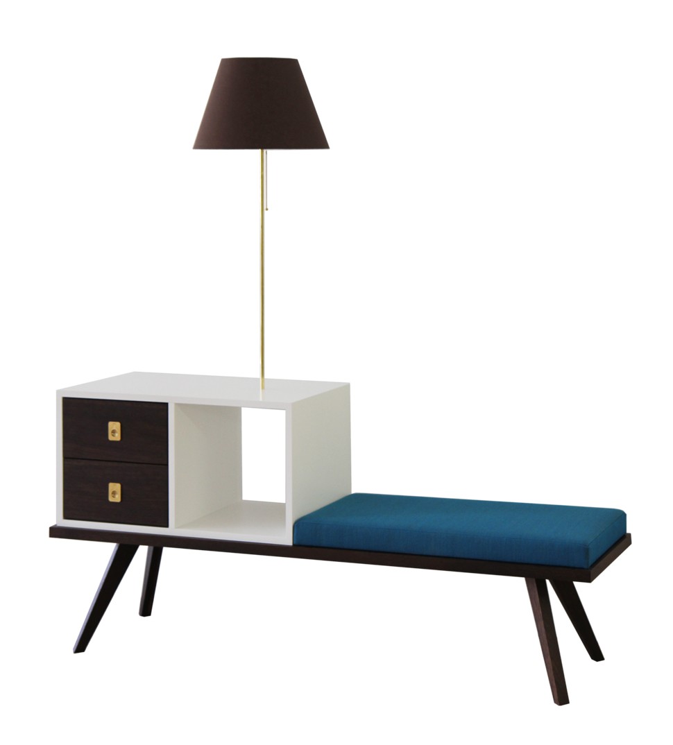 Lamp: Brass bar with brown lamp shade